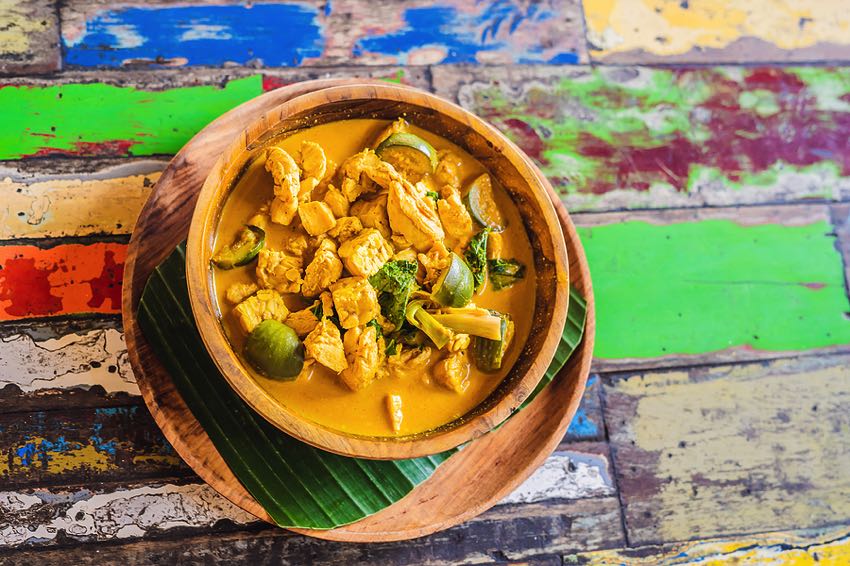 Light coconut milk, fish sauce, green curry paste, lime wedges…